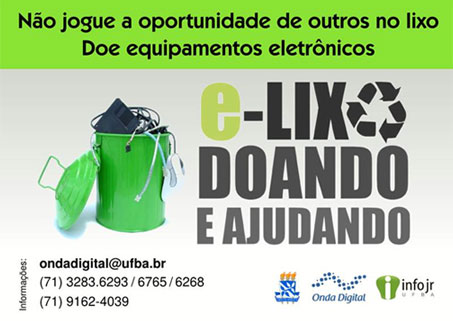 O projeto para arrecadação de lixo tecnológico computacional é uma parceria da UFBA, Programa Onda Digital e a Empresa Júnior de Informática infojr.