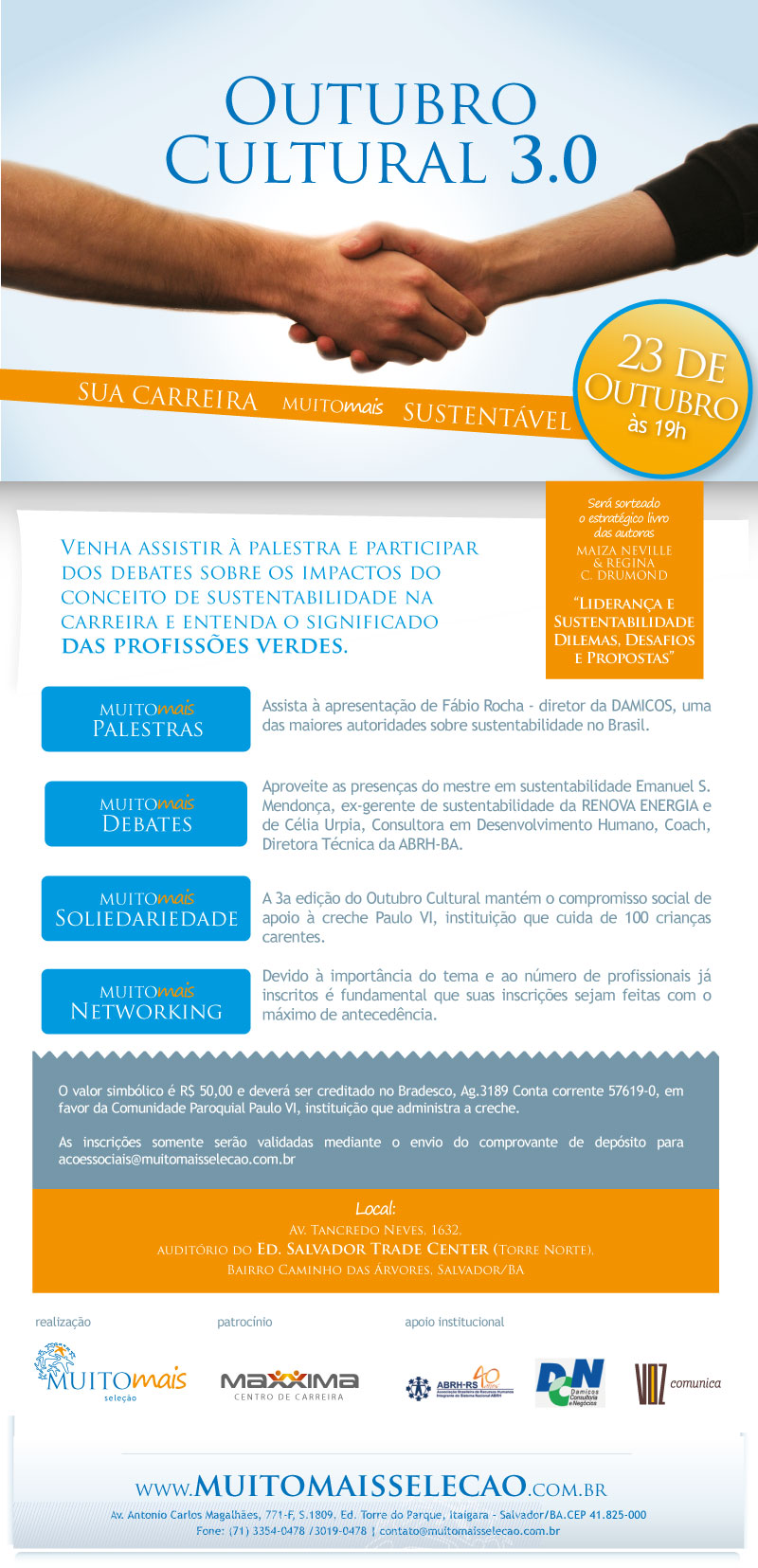 Encerraremos as inscrições do Outubro Cultural, na próxima 2ª feira, dia 22, às 12h.